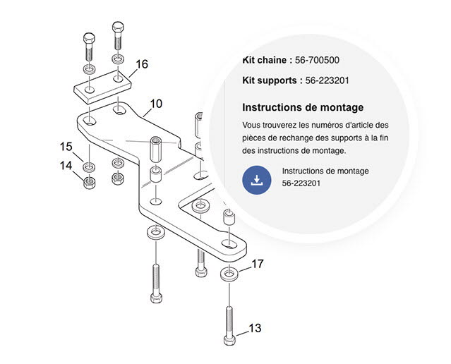Vous pouvez également trouver des pièces de rechange directement dans les instructions de montage si vous avez déjà le numéro d'article sur le kit de support du véhicule.